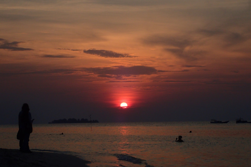 Времето тук сякаш беше спряло някъде в 20 век. Бензин се наливаше от бутилки от безалкохолно, продаващи се на пътя. Деца на привидно 12 години взимаха с мотора си по-малките си братя от училище и караха през острова. Друго семейство се придвижваше цялото на един мотор - бащата, майката, по средата голямото дете, а отпред на кормилото - бебето. Нямаше ги масовите туристи, преобладаваха местни заведения и няколко големи центъра за скуба дайвинг. Големият хит сред нас, бекпрекърите, беше местният пазар, на който ходехме всяка вечер. Храната бе предимно морска, уловена на същия ден, и една от най-вкусната, която съм ял в Индонезия. Преди това пък с моторче посещавах различни места, най-вече плажове. Хубавото на малките острови е, че винаги има един плаж, на който хората се събират за залез.